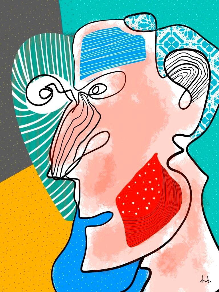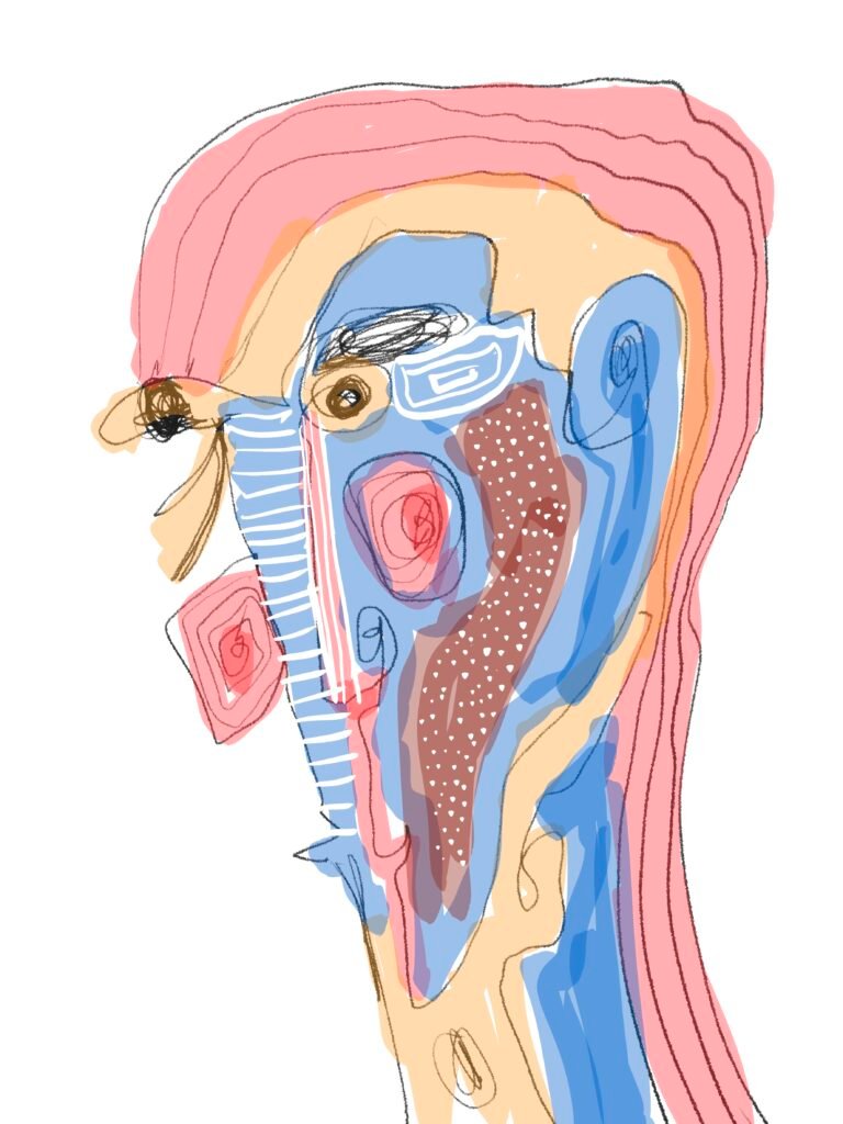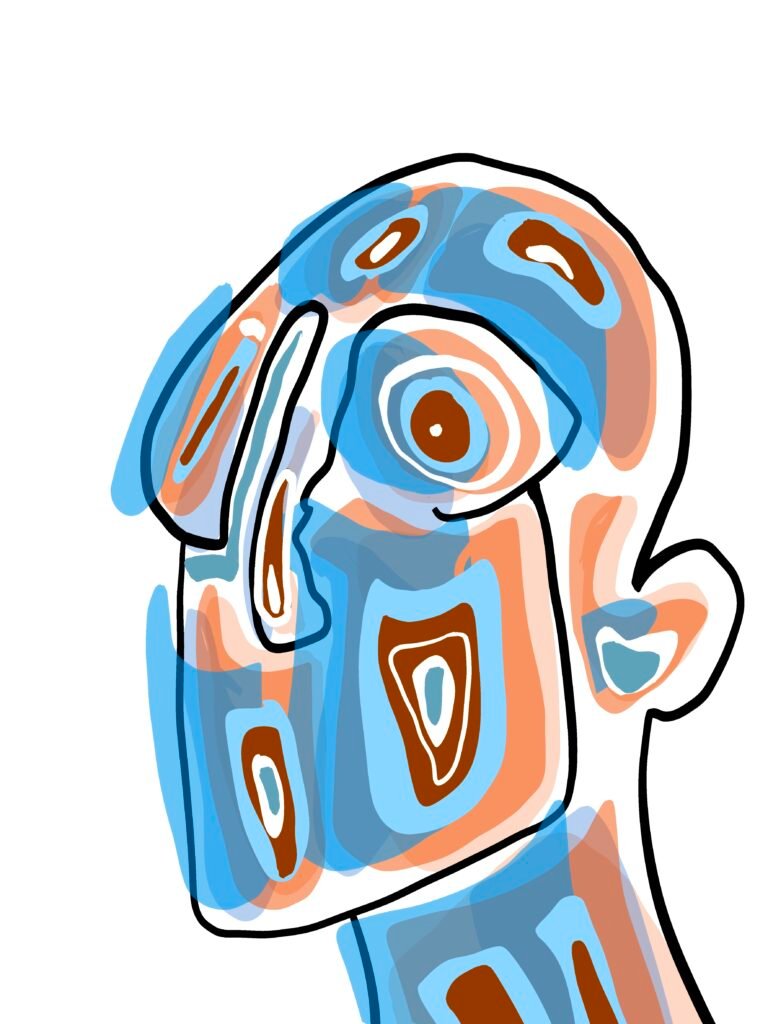 This collection explores the human face through deliberate distortion and expressive color. Each piece reimagines the familiar structure of a face, breaking it down and rebuilding it through abstraction—where accuracy is set aside in favor of emotion and gesture.