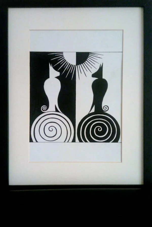 I didn’t want to use any colors in the cat paintings, but only black and white, in order to show the composition and color contrast.